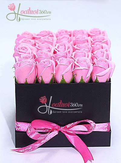 Hoa Hồng Sáp Thơm Màu Hồng Phấn –Hộp Vuông Đen