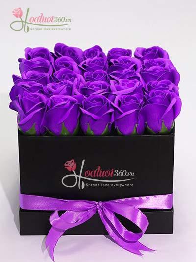 Hoa Hồng Sáp Thơm Màu Tím Hộp Vuông Đen